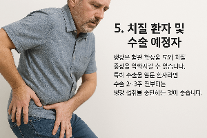 생강은 혈관 확장을 도와 치질 증상을 악화시킬 수 있습니다. 특히 수술을 앞둔 환자라면 수술 2~3주 전부터는 생강 섭취를 중단하는 것이 좋습니다.