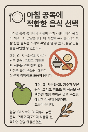 아침은 공복 상태이기 때문에 소화기관이 아직 완전히 깨어나지 않았습니다. 이 시점에 무거운 국밥, 떡, 빵 같은 음식은 소화에 부담을 줄 수 있고, 혈당 급상승을 유발할 수 있습니다.