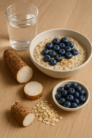 - 미지근한 물 한 잔 - 속쓰림을 달래주는 마 - 뇌를 깨우는 블루베리 - 건강한 곡물, 귀리