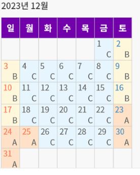 D> A> B> C 순으로 가격이 점차 낮아집니다. 가장 저렴한 구간은 C구간입니다. 방문하고 싶은 날짜의 구간은 언제인지 확인해 보시기 바랍니다.